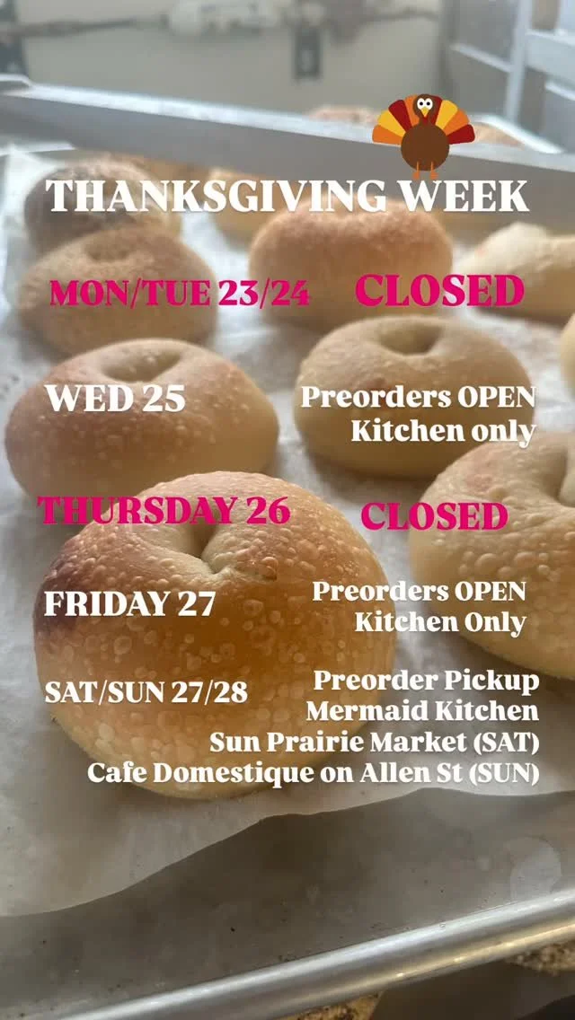 Mermaid Kitchen bagels are made by hand in our commercial kitchen on Madison’s East Side at 100 S. Baldwin St., Suite 200. You can now find us at the Sun Prairie Farmers Market and our new west side pickup location at Cafe Domestique on Allen Street.
