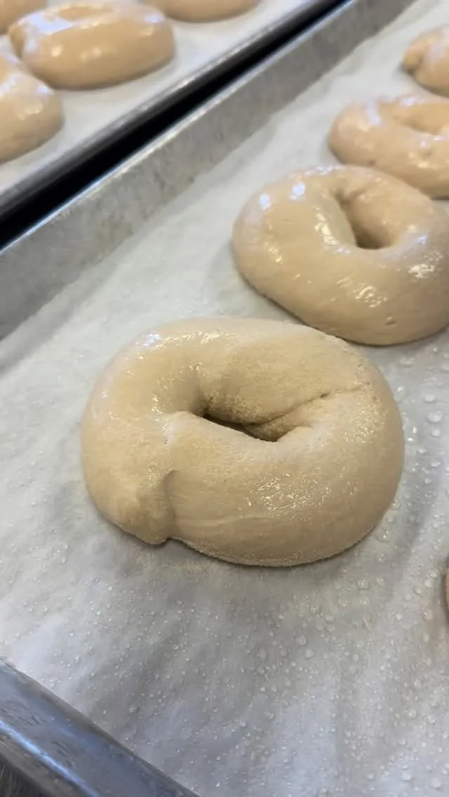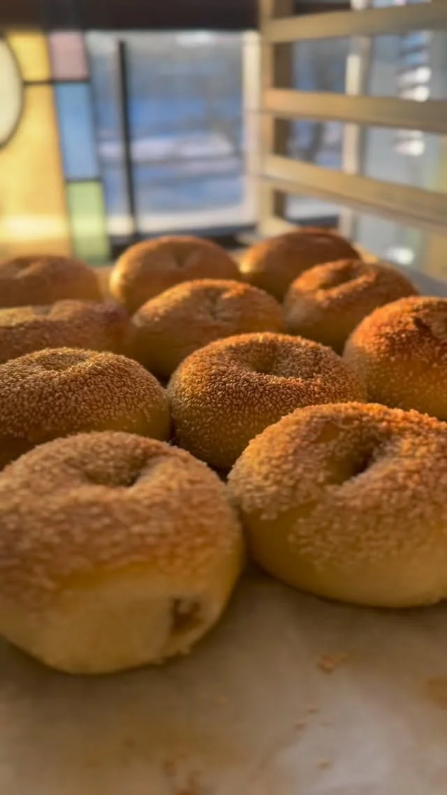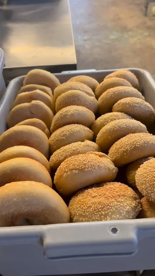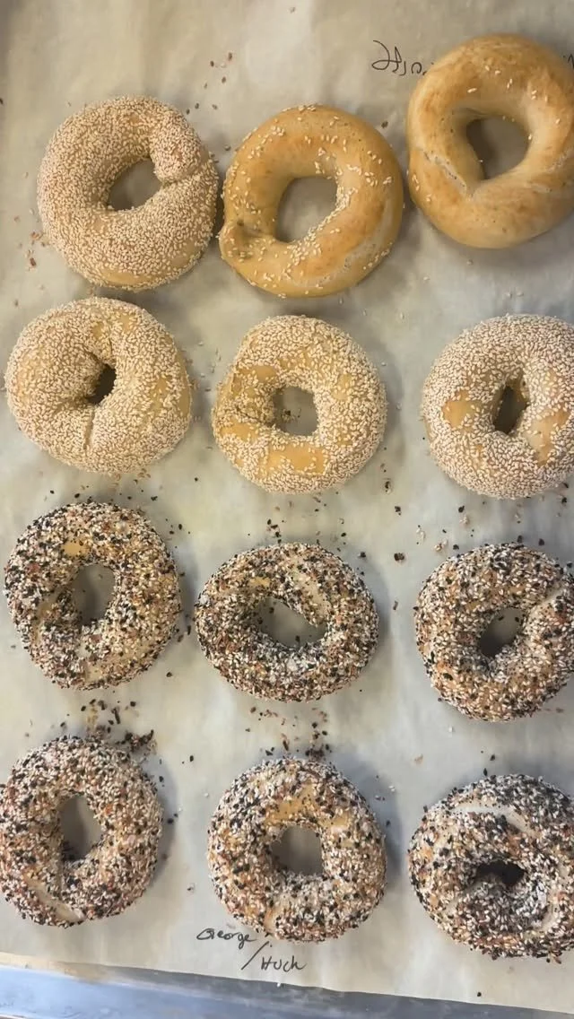 We bake our bagels to order and that keeps them fresh and chewy. Bagels are ready for from 8:30-10:30 along with our scallion cream cheese, labneh, cookies, granola, coffee beans, and specials.