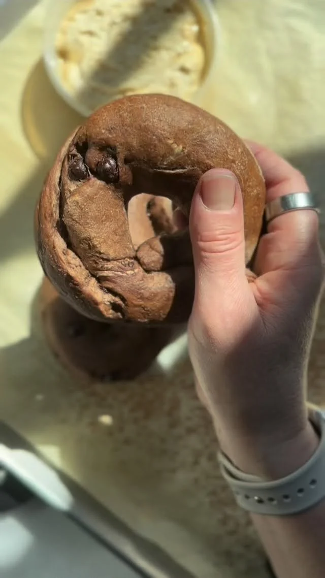 We bake our bagels to order and that keeps them fresh and chewy. Bagels are ready for from 8:30-10:30 along with our scallion cream cheese, labneh, cookies, granola, coffee beans, and specials.