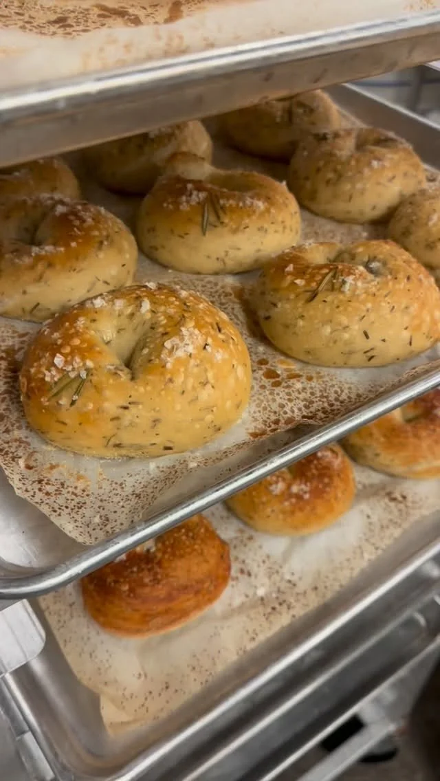 We bake our bagels to order and that keeps them fresh and chewy. Bagels are ready for from 8:30-10:30 along with our scallion cream cheese, labneh, cookies, granola, coffee beans, and specials.